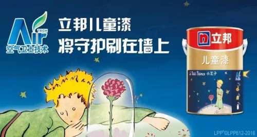 早在2015年,立邦攜手《小王子》合作推出立邦兒童漆,融合了3大核心技術(shù): 產(chǎn)品本身無添加,且能凈化室內(nèi)空氣中的甲醛;高效抵御多種日常生活污漬,讓孩子釋放天性、盡情玩耍;采用恒彩技術(shù),呈現(xiàn)出明亮、鮮艷的色彩,并針對不同的孩子進(jìn)行個性化配色,培養(yǎng)孩子想象力和創(chuàng)造力。為了確保室內(nèi)空氣的純凈,率先采用獨有的“空氣衛(wèi)士技術(shù)”,將守護(hù)刷在墻上,為寶貝守護(hù)純凈安心的成長空間。配合墻面衛(wèi)士凈味全效底漆使用,不僅會擁有更好的墻面效果,并且能實現(xiàn)雙重防護(hù),為每一個孩子提供色彩繽紛、健康、環(huán)保的成長環(huán)境。