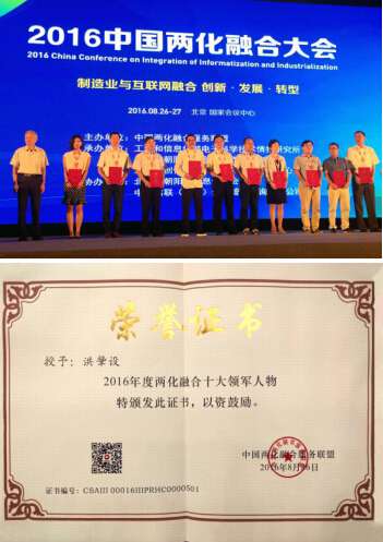“2016年中國兩化融合突出貢獻評選活動”由工信部兩化深度融合專項行動計劃(2013-2018年)實施主體、工信部兩化融合管理體系評定工作委員會所在機構(gòu)中國兩化融合服務聯(lián)盟主辦,工業(yè)和信息化部副部長懷進鵬,全國人大常委、財政經(jīng)濟委員會副主任委員、民建中央副主席辜勝阻,中國工程院院士鄔賀銓、吳澄等領(lǐng)導、專家見證。