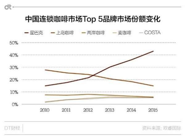 反而是星巴克,這幾年一路高歌猛進(jìn),2015年更是一家獨占4成以上市場份額。