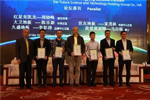 嘉賓演講環(huán)節(jié)結束之后,大會進入企業(yè)家論壇議程,主辦方邀請紅星美凱龍家居招商總經理李占強、大衛(wèi)木業(yè)品牌總監(jiān)陳樂新、久盛地板品牌中心總監(jiān)李彭濤、世友木業(yè)電商中心總監(jiān)束茂林、德爾未來科技執(zhí)行總裁姚紅鵬、南星家居董事長徐偉、融匯版圖地板董事長榮慧、柏爾地板董事長朱國良、書香門地副總裁喻樂、歐仁家居總裁張躍軒、良友木業(yè)副總經理葛曉海、貝爾地板品牌總監(jiān)李茂、圣象地板總裁助理陳大男等國內知名地板企業(yè)人士分別就互聯(lián)網渠道拓展、個性化產品創(chuàng)新、海外木材資源利用等話題進行深入探討。