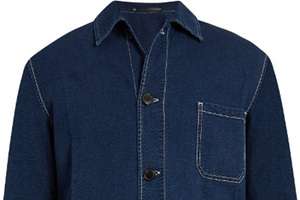 PAUL SMITH的靛藍(lán)色襯衫型夾克即可當(dāng)外套來穿也可當(dāng)襯衫內(nèi)搭。明顯的白色縫線利落地將整件夾克分割成多塊方正的幾何圖形,有一種很正經(jīng)的感覺。它被裁剪成寬松的版型配上三枚天然材質(zhì)的角質(zhì)紐扣并且無線條的設(shè)計(jì)襯...