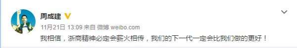 同一天,美特斯邦威董事長周成建在微博上發(fā)出了一條這樣的狀態(tài): “我相信,浙商精神必定會薪火相傳,我們的下一代一定會比我們做得更好!”