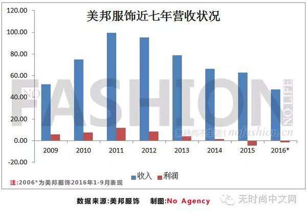 美邦服飾的第三個拐點是2012年。2012年,國際品牌在中國市場基本站穩(wěn)腳跟,這亦是本土品牌衰退元年。美邦服飾正是從2012年開始衰退,這一年的標(biāo)志性事件為十八大、反腐、中國經(jīng)濟放緩的危機。2012年,對于全球零售業(yè)、奢侈品行業(yè)來說,都是可以看做是標(biāo)志性的一年。在此之前的2011年,美邦服飾收入接近人民幣100億元,為99.451億,凈利潤12.060億元。