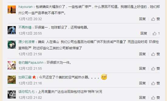不少網友在相關微博下評論稱,近期佛山環保檢查較嚴,包裝生產企業產品供不應求,原紙價格大幅上漲,不少企業在減產盡量。一位小家電品牌創始人也向億邦動力網證實了這一消息,表示近
