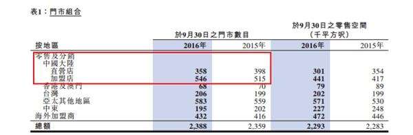值得注意的,佐丹奴內(nèi)地門店總數(shù)變化不大,但直營店及加盟店的數(shù)量卻有很大變動,直營店減少40間至358間,加盟店增加31間至546間。