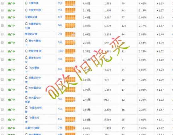 這款牛仔褲的寶貝,看上去推廣的還不錯,出價不高,點擊花費也不多。原因,就是因為這幾個詞的質(zhì)量分是滿分,整體的權重高,才能靠低價獲得好的排名,有一個降低的ppc。