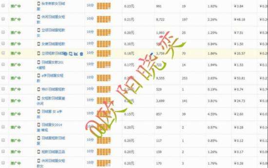 拿去年老的數(shù)據(jù)做個對比,一款羽絨服的寶貝,滿滿的10分關鍵詞,各位注意看出價和ppc,對于女款羽絨服來說,出價已經(jīng)很低了。但是ppc更低,這就說明,直通車權重高,可以出價更低,依然能拿到流量。