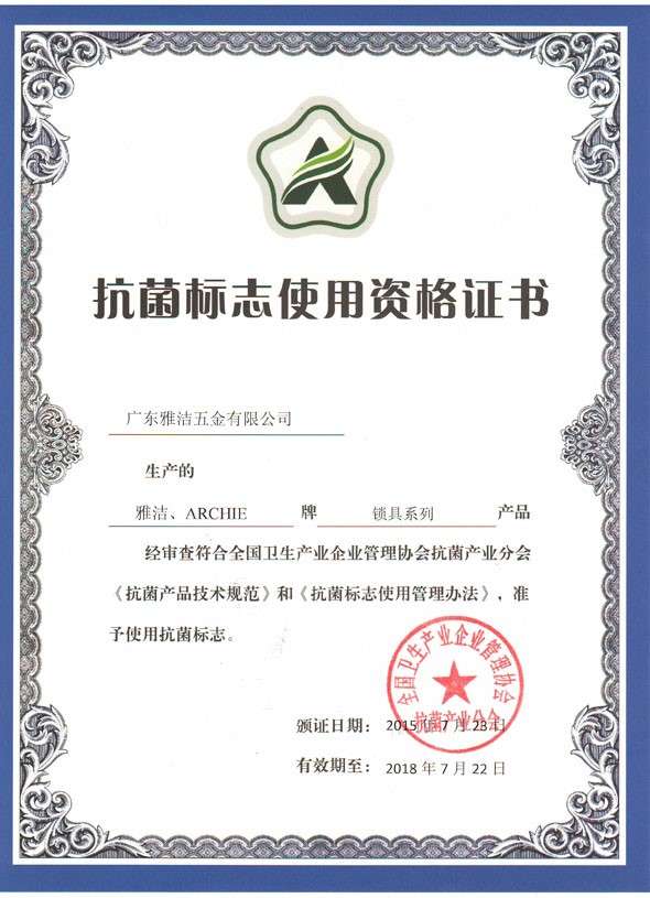 由于抗菌殺菌功能是看不見摸不著的特性,單單從外觀上,消費者很難去區(qū)分真假。所以,專家提醒消費者在選購抗菌五金時,一定要認真驗證該產(chǎn)品是否具有中國抗菌材料及制品行業(yè)協(xié)會頒發(fā)的抗菌標志產(chǎn)品認證證書和標志。像雅潔抗菌五金,就獲得了該證書。而且雅潔抗菌五金目前已經(jīng)服務(wù)了千家萬戶,在抗菌五金市場知名度極高,抗菌五金產(chǎn)品備受好評,值得信賴。?