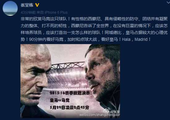 張呈棟對(duì)歐冠比賽的比賽過程和結(jié)果做了準(zhǔn)確預(yù)測(cè)