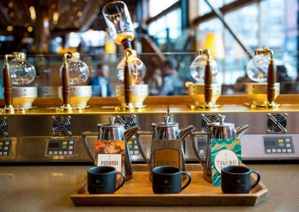 早在 2014 年,星巴克在總部西雅圖開業(yè)的第一家 Roastery 咖啡館,就打出了與咖啡師互動的招牌,讓品牌的忠實追隨者一邊盡情品嘗咖啡,一邊聆聽咖啡師分享的獨家經(jīng)驗。正如 CEO 霍華德舒爾茨(Howard Schultz)在聲明中說的那樣:“在紐約,我們想要在保持初心的同時實現(xiàn)更大也更大膽的想法,以獨一無二且史無前例的方式展現(xiàn)咖啡與工藝。”