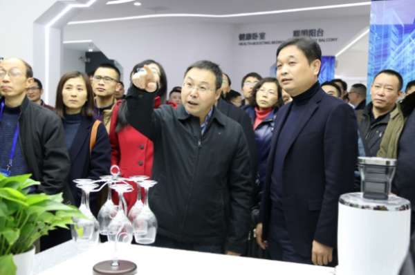 榮事達(dá)電子電器集團(tuán)董事長(zhǎng)潘保春陪同陳英副司長(zhǎng)參觀榮事達(dá)智能家居全價(jià)值鏈雙創(chuàng)中心