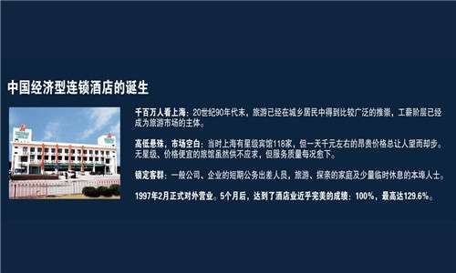 錦江之星這個(gè)品牌我覺得很自豪。今年是2016年,我們公司品牌成立于1996年,也是中國經(jīng)濟(jì)型酒店第一個(gè)成立的品牌,20年來,大家會(huì)覺得它在變老。我想說,錦江之星的未來會(huì)更好。我們在2015年為錦江之星只做了兩件事,其實(shí)錦江之星開始做經(jīng)濟(jì)型酒店,做的更多的是為行業(yè)的創(chuàng)始,不管以前酒店是怎么樣的,但是錦江之星的出現(xiàn),接下來經(jīng)濟(jì)型酒店就隨著1996年開始進(jìn)入中國的酒店行業(yè)。這20年發(fā)展以來,其實(shí)我剛才看了一下,在第一排的很多都是本土的連鎖化企業(yè)。我非常自豪,我們中國不會(huì)比當(dāng)中這一桌差吧?有信心的鼓一下掌。在當(dāng)時(shí),錦江之星那個(gè)時(shí)候在上海還有148家星級(jí)酒店,包括有很多其他酒店比較小。但是這個(gè)時(shí)候我們就在上海的錦江樂園開了第一家酒店。其實(shí)20年來,我們一直在做的是什么?其實(shí)是提供一個(gè)很好的品質(zhì)給我們的消費(fèi)者,一個(gè)合適的價(jià)格給要求更高性價(jià)比的客戶。