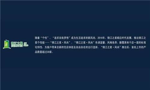 2015年,錦江之星就做了兩件事情, 20年來產(chǎn)品在消費(fèi)者的眼中已經(jīng)固化了,未來的消費(fèi)者是怎么樣的?他需要怎么樣的?我們主要的消費(fèi)群未來就是80后、90后,甚至于00后,我們的產(chǎn)品應(yīng)該怎么樣適應(yīng)消費(fèi)者進(jìn)行轉(zhuǎn)變?在2015年推出了錦江之星的系列品牌,就是把原先的錦江之星進(jìn)行了細(xì)分,