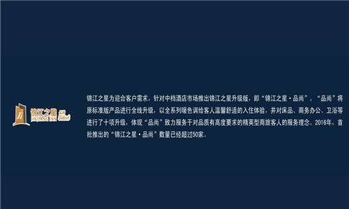 首先我先介紹一下品尚,其實(shí)錦江之星品尚比升級(jí)前,給客戶提供更高品質(zhì)的產(chǎn)品,但是同時(shí)它是在保有錦江之星原有的運(yùn)營模式的情況下。