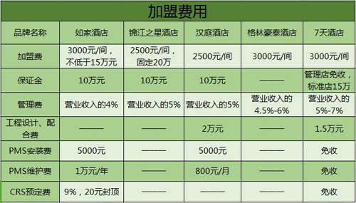 綜合分析:就業(yè)主的加盟訴求來看,經(jīng)營房間有限可以選擇漢庭,其最低要求為70間房,無形中加盟費(fèi)減少了;期限上不想太長可以選擇錦江之星和7天,只需8年即可;不想交保證金可以選擇格林豪泰,完全免費(fèi);想降低經(jīng)營成本可以選擇如家,管理費(fèi)最低只要4%。通過以上比較,業(yè)主們是不是心里有譜了呢?
