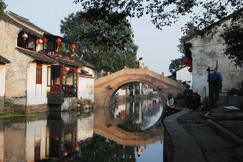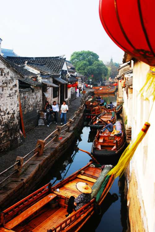 靜靜地走在周莊的街道上,就像是闖進(jìn)了一個攝影棚,因為這里太適合釀造中國人代代流傳的故事,夢里花開,流水紅顏。攝影大師稱:“景中有景,移步換景,美妙無比。”而更多的作家、詩人謂之:“創(chuàng)作靈感盡在不言中。一艘游船、一支民歌、一座民居皆能寫成大散文,抒發(fā)人間真善美的大手筆,理當(dāng)是古鎮(zhèn)周莊。”