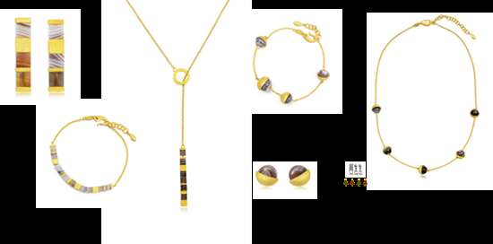 g* 系列足金瑪瑙項鏈利用簡約線條,將表面呈條紋效果的黃金,與多顆擁有獨特紋理的方形波斯瑪瑙互相牽引,垂墜于若隱若現的鎖骨間,令你輕易成為年會派對中最耀眼奪目的女主角。手鏈上尺寸不一的圓形波斯瑪瑙,與簡單的黃金線條交相輝映。圓潤標致的波斯瑪瑙耳環(huán),讓女主人的優(yōu)雅風情沿著耳畔悄聲綻放。