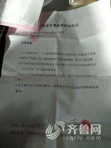 “昨天晚上我們找到了濰坊紅黃藍(lán)親子園的另一位相關(guān)負(fù)責(zé)人,該負(fù)責(zé)人給了我們一個(gè)解決方案,但家長們都不能接受,因?yàn)槲覀兪前凑?00塊錢一節(jié)課交的,她想把我們這些孩子轉(zhuǎn)到其他的早教園去并且是按50元一節(jié)課給我們算,而且她跟李姓負(fù)責(zé)人一人承擔(dān)一半,同意的話她就給我們家長打欠條,不同意的話她說她也沒辦法。”陳女士說,對于這個(gè)解決方案家長們肯定都是不同意的,而家長們現(xiàn)在也正在通過各種渠道來維護(hù)自己的合法權(quán)益。