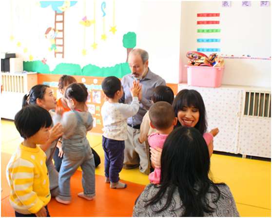 先生做師資培訓(xùn)之外,還親自走訪了幾家紅黃藍(lán)親子園,觀摩中國老師的