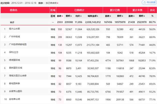 12月前三周成交列廣州前10