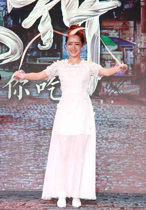 白冰出席《決戰(zhàn)食神》發(fā)布會(huì) 現(xiàn)場(chǎng)學(xué)扯面歡笑連連