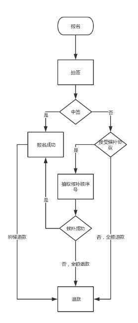 3、選手報名時需要決定是否接受候補,接受候補的未中簽選手,將按照抽簽獲得的順序號進行候補;不接受候補的未中簽選手,將在抽簽結束后一周內將報名費全額退回選手報名時支付的賬戶。