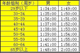 馬拉松精英選手成績標準如下: