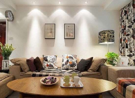 客廳,看上去顯得有點中規中矩的,戶型是方方正正的,沙發也是塊狀的,顯得較為生硬,總覺得少點變化。事實上它需要一些較軟的裝飾元素,就比如茶幾在這就大派用場,橢圓形的,讓空間多了些弧形的元素,給人的感覺就很舒服。頂部的燈光,也同樣,讓空間多了點變化。