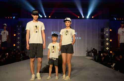 也搭配亮相,清新自然;家居服則以一家三口大小模特走秀的方式呈現,凸顯“家文化”的情暖溫馨。