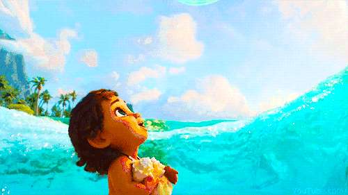 后來看了預(yù)告片,被里面的海洋特效驚艷了,傻雞和小豬的組合也萌出一臉血,我開始懷疑自己對這位與眾不同的迪士尼公主的評判是否有些草率。畢竟,從1937年勤勞能干、人傻歌甜的白雪公主,到2013年親手KO王子的艾莎公主,