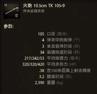 30s長裝填,3s短裝填,320*4,1280的爆發,運氣好點可以收掉一個59,穩收一個同級TD(除了那些血很多的),火控稀爛,散布垃圾,不縮完圈飛天遁地,縮完圈精度還可以,不過擴圈良好,近戰還是很不錯的,黑槍就很菜了,一個彈夾中兩發就不錯了。217/242的穿深也很一般,還好APCR的彈速驚人。