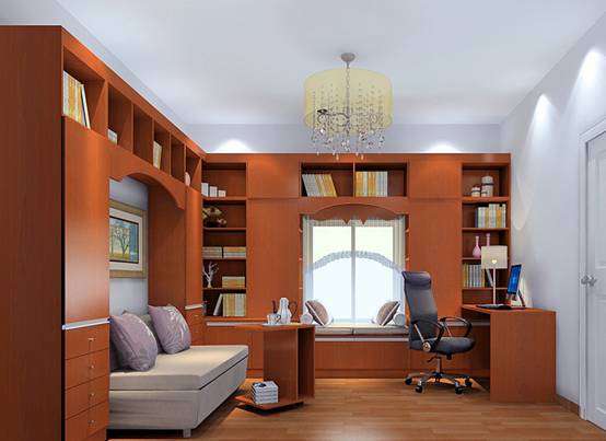 尚品宅配加州夢書房以高柜為主,加上吊柜的搭配,儲物功能很強,在窗戶周圍利用矮柜和高柜相疊來做了一個休閑區(qū),兩邊都可儲物,整個空間利用率很高,有很強的定制性。喜歡加州夢的設(shè)計風格的朋友,不妨定制一套吧。