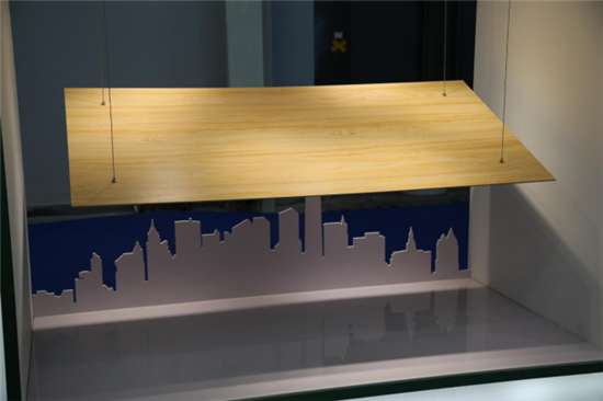 蒙娜麗莎集團展位整體通過綠色與白色的時尚搭配,充分體現(xiàn)了蒙娜麗莎集團堅持走“資源節(jié)約型、環(huán)境友好型”發(fā)展之路。陶瓷薄板的國內(nèi)首創(chuàng),以其節(jié)能節(jié)材、低碳環(huán)保的產(chǎn)品特性成為新型綠色裝飾材料。在展位上,1800mmX900mmX5.5mm的陶瓷薄板,僅僅由四根鋼絲吊起,讓參觀人員更加直觀感受到陶瓷薄板的薄、大、輕盈。