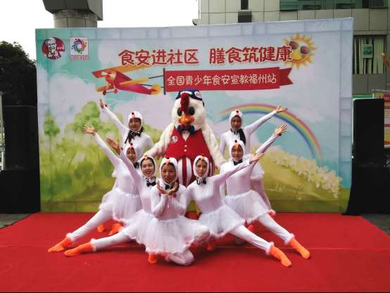 福州帝豪肯德基外廣場處,伴隨著節奏動感的《白羽雞歡樂頌》,一群身著