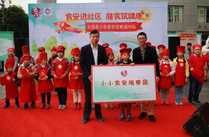 24名來自福州市不同學校的小學生組成的“小小食安觀察團”正式成立。福州市市場監督管理局黨組成員、食品安全總監周璇與百勝餐飲(福州)有限公司肯德基區域經理黃志堅共同為小小食安觀察員們頒發證書并授予牌匾。周璇親切地勉勵小小食安觀察員:“你們一定要努力學習食品安全知識,在同學中起到帶頭模范作用,為福州市創建全國食品安全城市貢獻一份力量。”“很高興可以成為‘小小食安觀察員’,這個身份讓我感到一份全新的責任,那就是努力學習食品安全知識,并把這些知識傳播給更多的小伙伴。”小小食安觀察員張鵬煜說道。