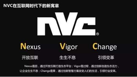 在互聯(lián)網(wǎng)時(shí)代下,照明行業(yè)正處于渠道競(jìng)爭(zhēng)和品牌競(jìng)爭(zhēng)轉(zhuǎn)型之間,用戶和商業(yè)模式也正在發(fā)生著巨大的變化,傳統(tǒng)的商業(yè)模式已經(jīng)改變,互聯(lián)網(wǎng)才是當(dāng)下的商業(yè)主流模式。在此主流模式下,雷士照明“NVC”也被賦予了新的寓意:N代表“Nexus(開放互聯(lián))”,V是“Vigor(生生不息)”,C意味著“ChanGE(引領(lǐng)變革)”,Nexus是因,通過開放互聯(lián)打造生態(tài)平臺(tái);Vigor是過程,通過創(chuàng)新創(chuàng)造生態(tài)活力,讓企業(yè)生生不息;Change是果,通過創(chuàng)新智慧方案改變?nèi)藗兊纳睿I(lǐng)行業(yè)變革。