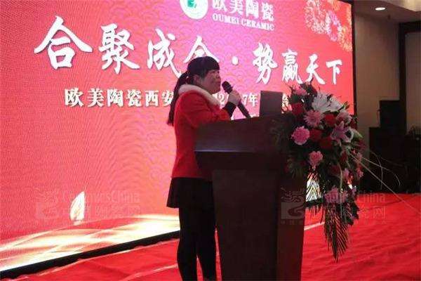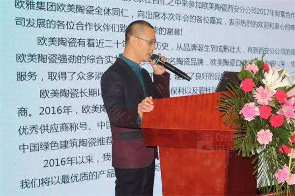 隨后,歐美陶瓷西安分公司總經(jīng)理肖勝華為與會全體作了將近一個小時的報告及演講。報告中,肖勝華針對西安分公司在2016年所做的工作和取得的成績分別進行了細致的闡述:相比2015年分公司成立之前,歐美陶瓷2016年在銷售業(yè)績上取得了突破性增長,增長率100%,其中通過促銷實現(xiàn)的增長達到30%,其它綜合營銷渠道帶來的增長70%;專賣店建設方面,從2015年的20家增加到了60家,增長率高達200%,歐美陶瓷在陜甘寧地區(qū)的整體品牌形象得到質(zhì)的提升和飛越;在幾個大的整合營銷活動中,通過明星的帶動、20多條線路逾100臺公交車廣告以及西安交通電臺等幾大方式的宣傳推廣,歐美陶瓷知名度更上了一個新的臺階。