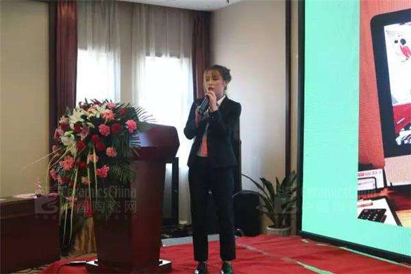 商州歐美陶瓷總經(jīng)理佛麗娜在會上分享