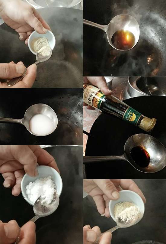 在鍋中加入蒸魚豉油、胡椒粉、白糖、雞精、水淀粉做汁兒