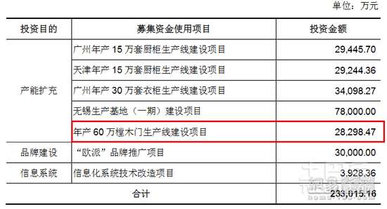 實際上,兩家歐派在IPO你追我趕一直是業(yè)內(nèi)高關(guān)注度事件。值得注意的是,兩家“歐派”募集資金在木門領(lǐng)域的投入項目都是建設(shè)年產(chǎn)60萬樘生產(chǎn)線。