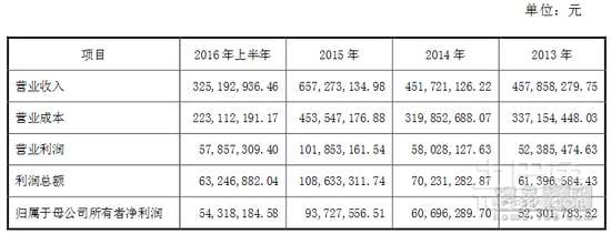 根據(jù)招股說明書,2013-2015年,江山歐派分別實現(xiàn)營業(yè)收入約4.58億元、4.52億元和6.57億元,2016年上半年實現(xiàn)營收3.25億元。報告期內(nèi),江山歐派在2013-2015年分別實現(xiàn)對應(yīng)的歸屬凈利潤約為0.52億元、0.61億元和0.94億元。