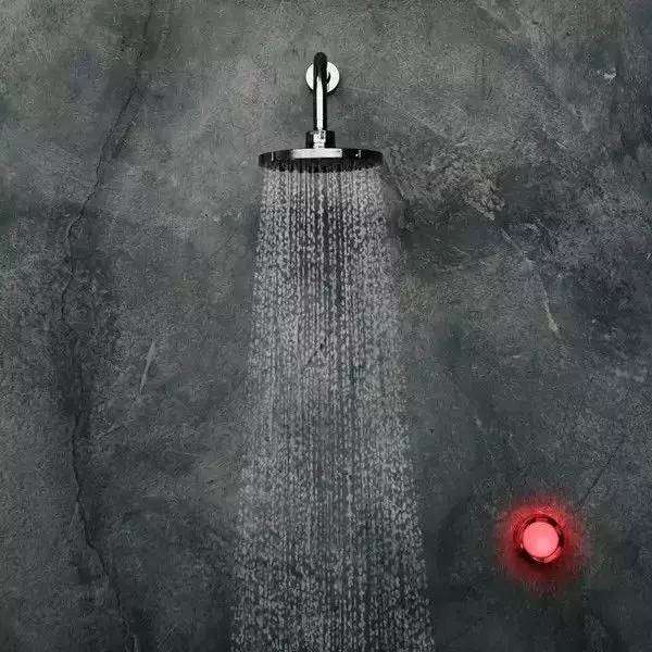 智能花灑,可監測水流量,當紅色指示燈變亮時,就是在提醒用戶需節約用水。