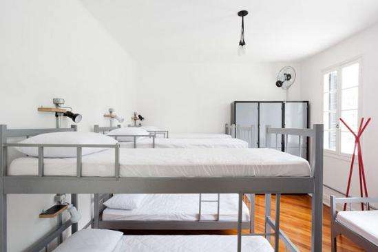 在老友Guilherme Perez的「慫恿」下,建筑師Felipe Hess帶來了夢想中的We Hostel——巴西圣保羅首間設(shè)計風格旅館。基于一幢1900年的白色傳統(tǒng)建筑 ,在保留了部分傳統(tǒng)元素后,設(shè)計師們摻進了許多現(xiàn)代的設(shè)計風格,比如來源于跳蚤市場并經(jīng)過精心整修的各式家具、不同顏色的浴室 、個性燈具和一面可任意涂鴉的黑板式天花板等等;而盡管也有雙人間客房,但We Hostel里更多的還是多人、乃至集體宿舍式的客房,設(shè)計師將更多的空間讓位予社交 、餐飲、娛樂等公共空間,讓旅客擁有舒適、溫馨的居家感覺。