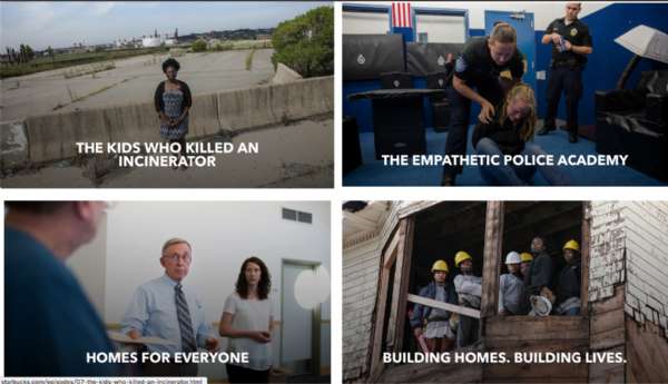 ,追蹤多位社區(qū)工作者細(xì)微而日常的工作一點(diǎn)點(diǎn)改變居民生活的故事。星巴克對(duì)這個(gè)系列紀(jì)錄片的重視從它的制作人可以窺見(jiàn)——由當(dāng)時(shí)的星巴克 CEO 的霍華德·舒爾茨和執(zhí)行制片、前《華盛頓郵報(bào)》資深編輯 Rajiv Chandrasekaran 共同創(chuàng)作。