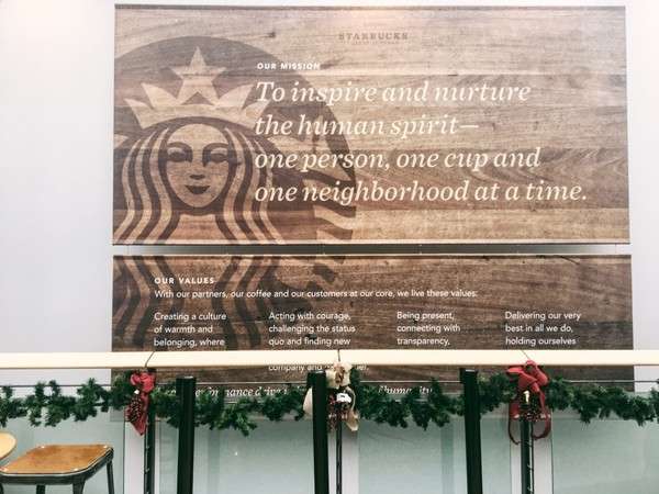 大樓內(nèi)部隨處可見星巴克的mission,這是我最喜歡的也是我在樓內(nèi)見到的最大的mission墻。私以為星巴克真的有在