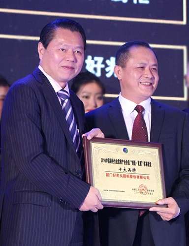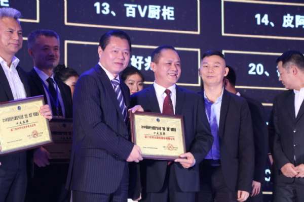 好兆頭櫥柜獲得“十大品牌”董事長陳加棟上臺領獎