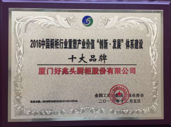 摘要:在中國櫥柜行業(yè)重塑產業(yè)鏈價值體系建設表彰大會上,好兆頭廚柜再次榮獲“十大品牌”獎。這一殊榮也將繼續(xù)督促著好兆頭人,繼續(xù)以專業(yè)廚柜領先品牌的姿態(tài)走在行業(yè)前列,引領中國定制櫥柜業(yè)發(fā)展!“2016中國櫥柜行業(yè)十大品牌“陳加棟(好兆頭……
