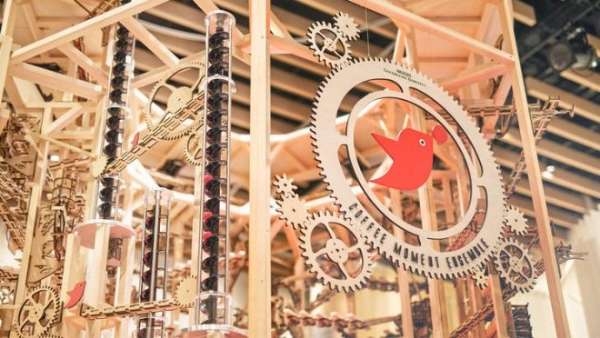 從12月2日起至12月25日,你能在雀巢咖啡的原宿店內(nèi),看到一個(gè) 11.5 英尺(約 3.5 米)高,由1450個(gè)木制零件,180 個(gè)鍵構(gòu)造的大型音樂裝置。