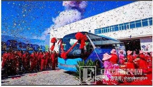 下圖,一年后,下線的首臺(tái)青杉客車(chē)(同款不同色)。