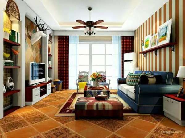 想讓電視柜有簡單活潑的風格,那就不要用柜子把它們填滿,用開放式柜子打造出輕松的感覺。